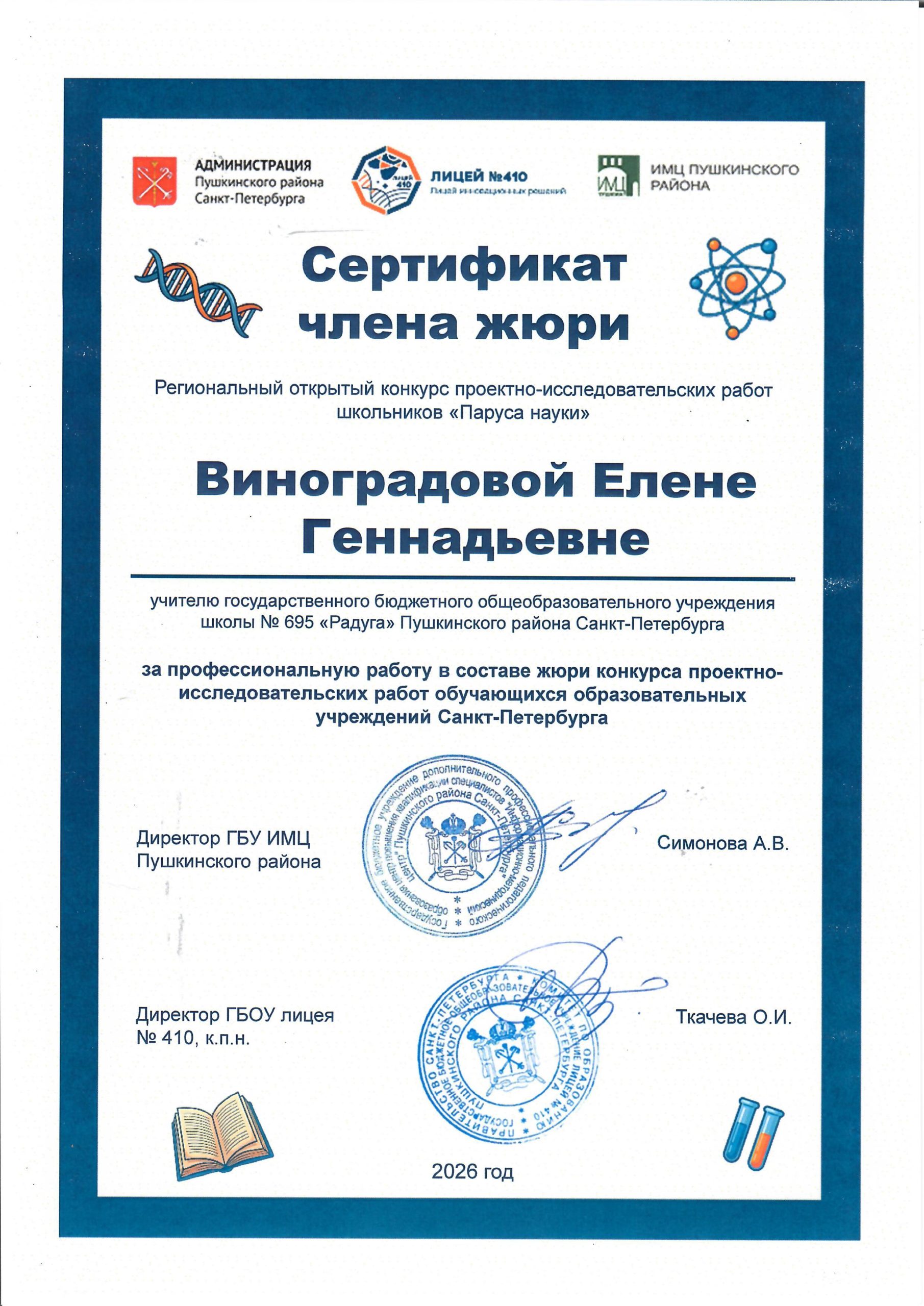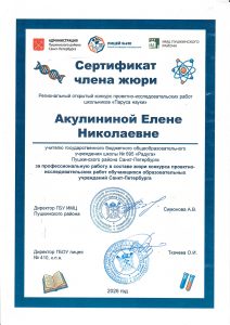 1. Виноградова Елена Геннадьевна, секция «На стыке наук» (9-11 классы).