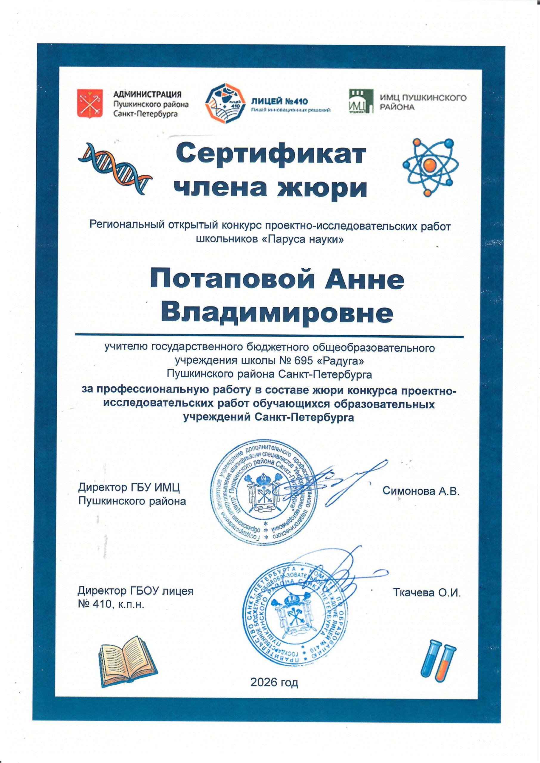 19 февраля 2026 года в лицее №410 состоялся XIX Региональный открытый конкурс проектно-исследовательских работ школьников «Паруса науки».