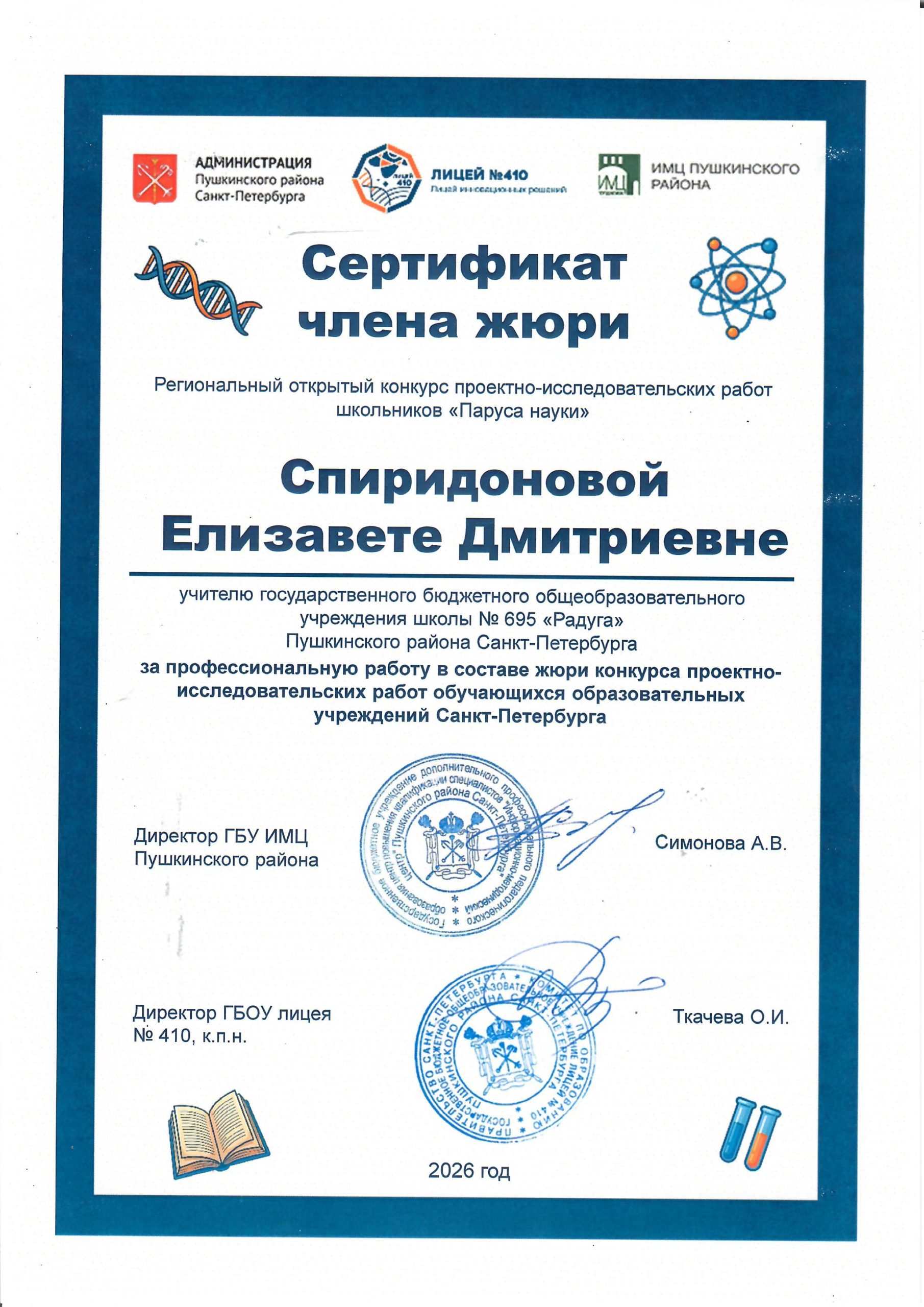3. Спиридонова Елизавета Дмитриевна, секция «Гуманитарные науки» (5-8 классы).