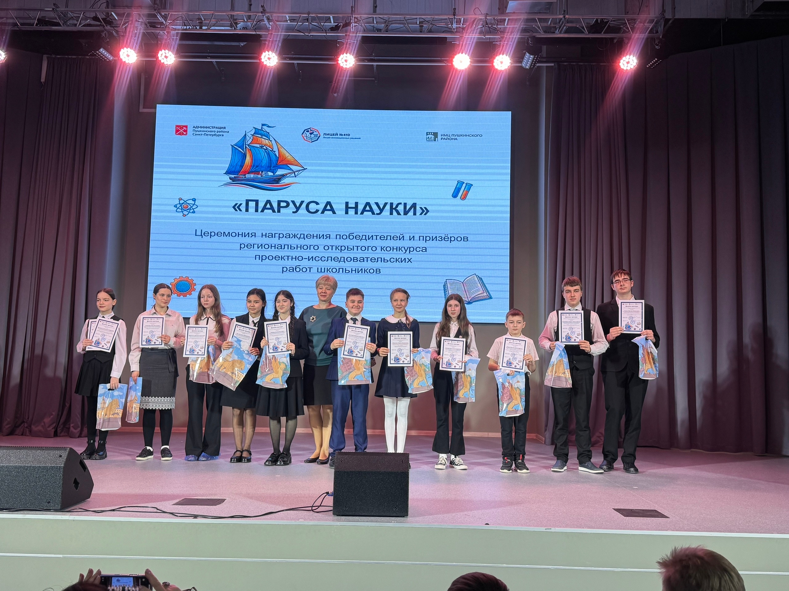 Волнительным и радостным моментом для юных исследователей стало 12 марта — именно в этот день в лицее № 410 на площадке корпуса «Камероновский» прошло награждение победителей и призёров регионального конкурса проектных работ «Паруса науки».